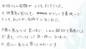 又、従業員の皆さんも、優しい言葉遣いで