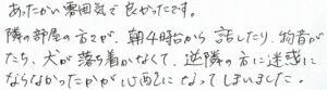 たち、犬が落ち着かなくて、逆隣の方に迷惑に
