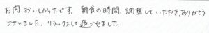ございました。リラックスして過ごせました。