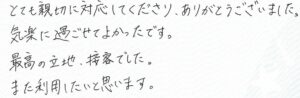 とても親切に対応してくださり、ありがとうございました。