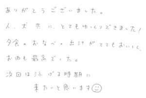 人、犬共に、とてもゆっくりでしました!
