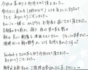 Facebookできよみ荘を知り利用させて頂きました。