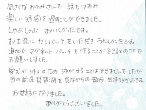 お土産にカンバッチをいただきうれしかったです。