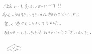 親切にしていただきありがとうございました。