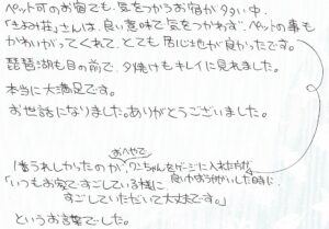 「きよみ荘」さんは、良い意味で気をつかわず、ペットの事も