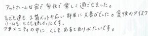 アットホームな宿で、家族で楽しく過ごせました。