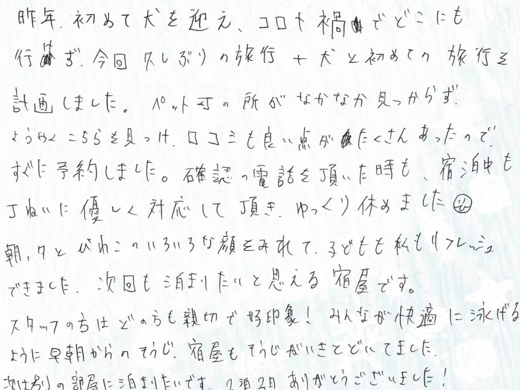 お客様の声 | ページ 128 | きよみ荘│お客様の声・ペット